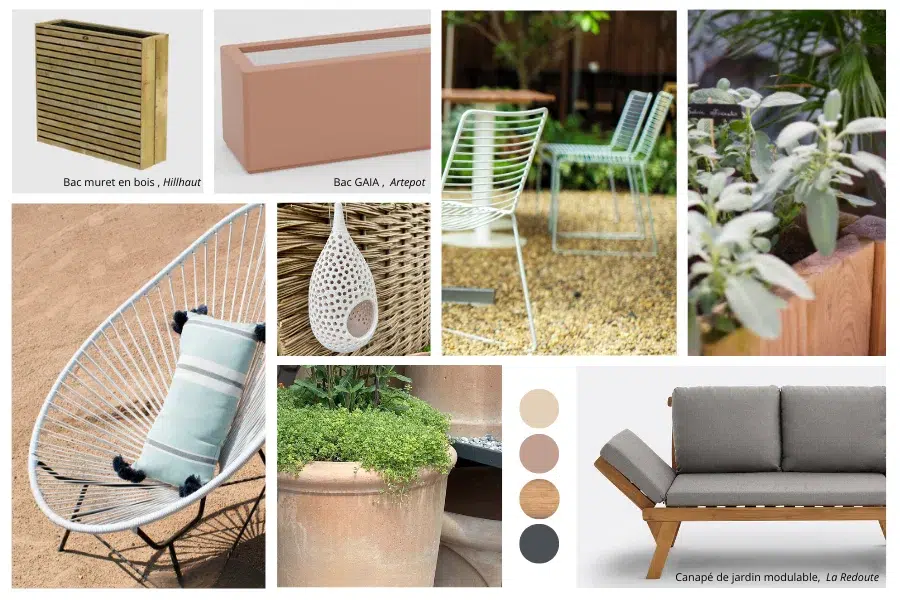 Structurer la terrasse en zones de vie grâce aux bacs de plantation.